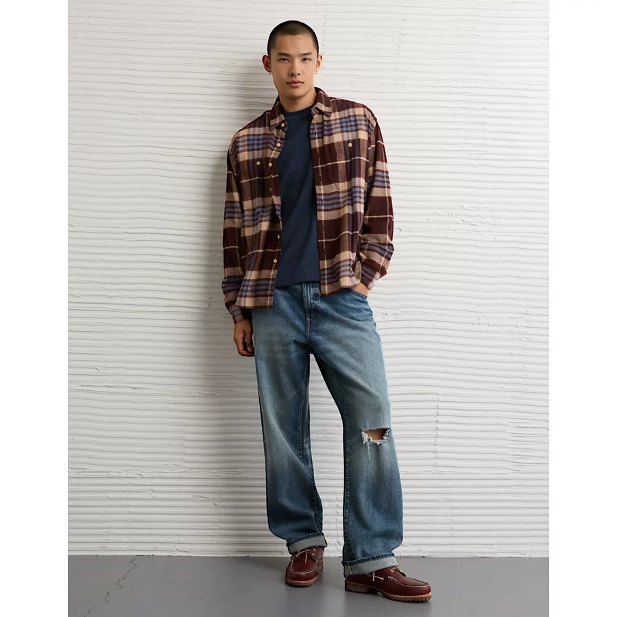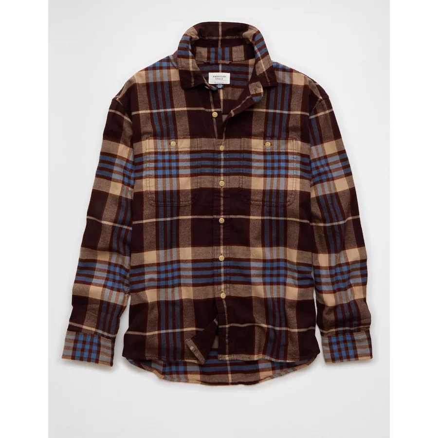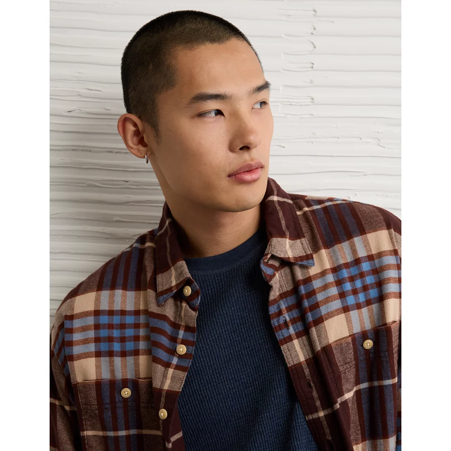 AE Relaxed Fit Everyday Flannel Shirt – Burgundy