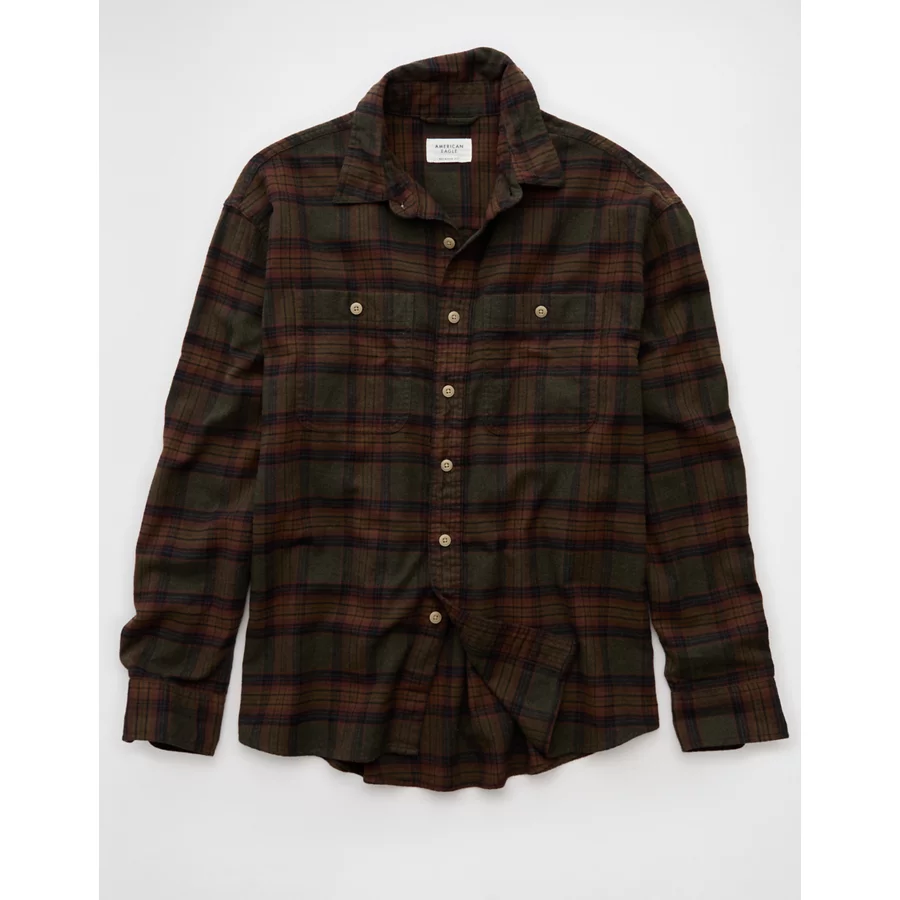 AE Relaxed Fit Everyday Flannel Shirt - Brown