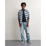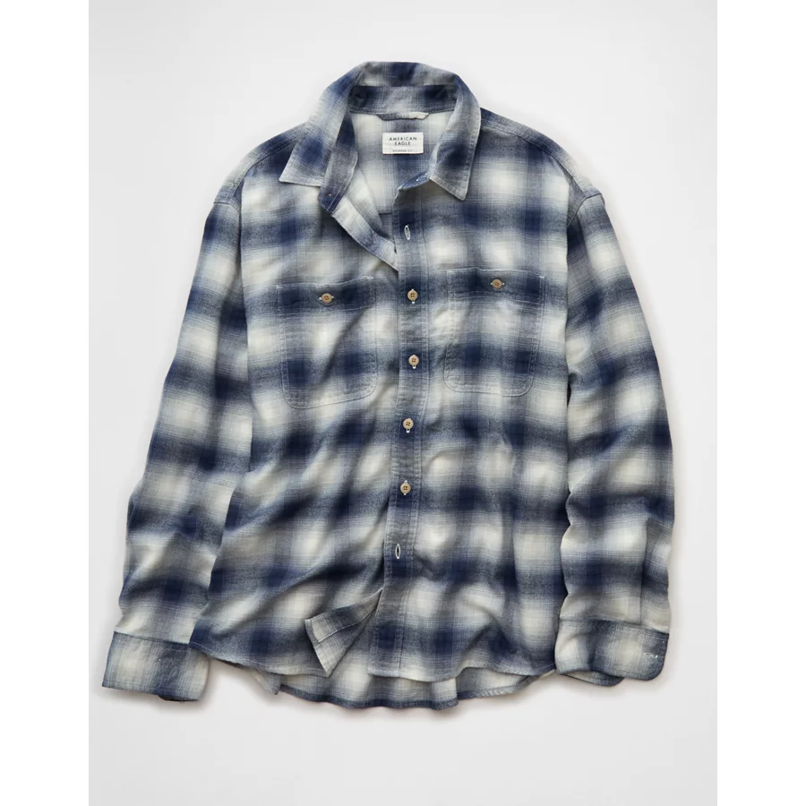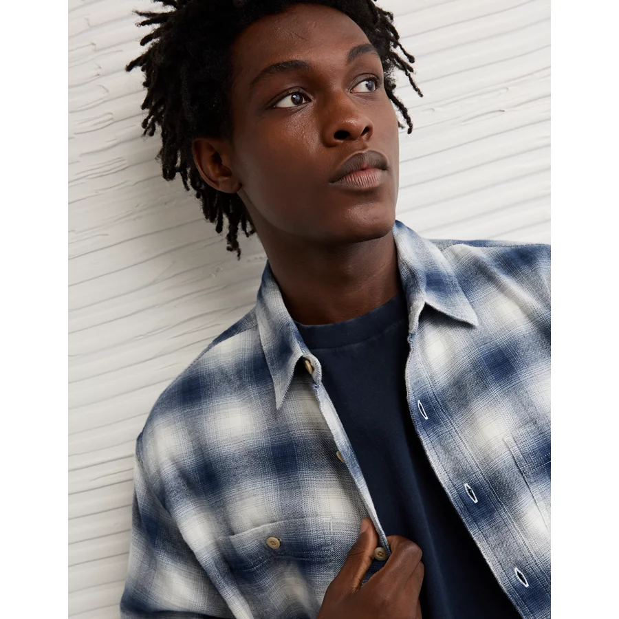 AE Relaxed Fit Everyday Flannel Shirt – Light Blue