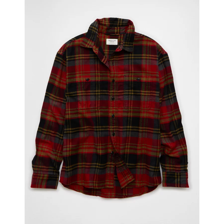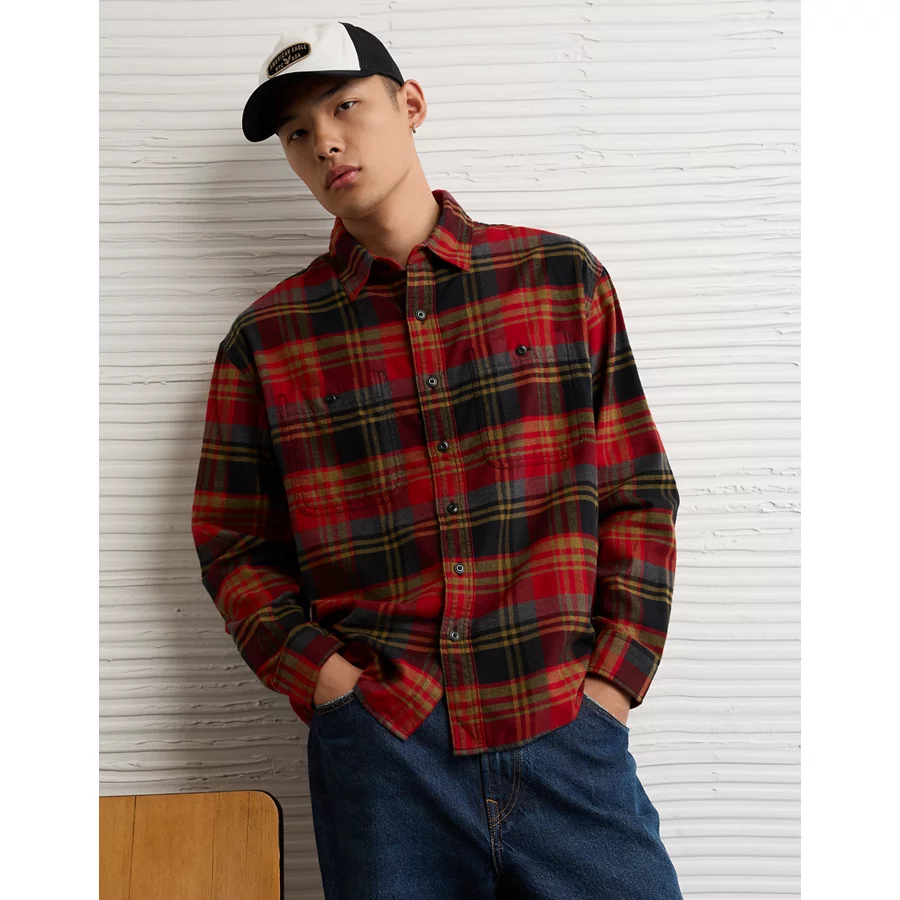 AE Relaxed Fit Everyday Flannel Shirt – Red