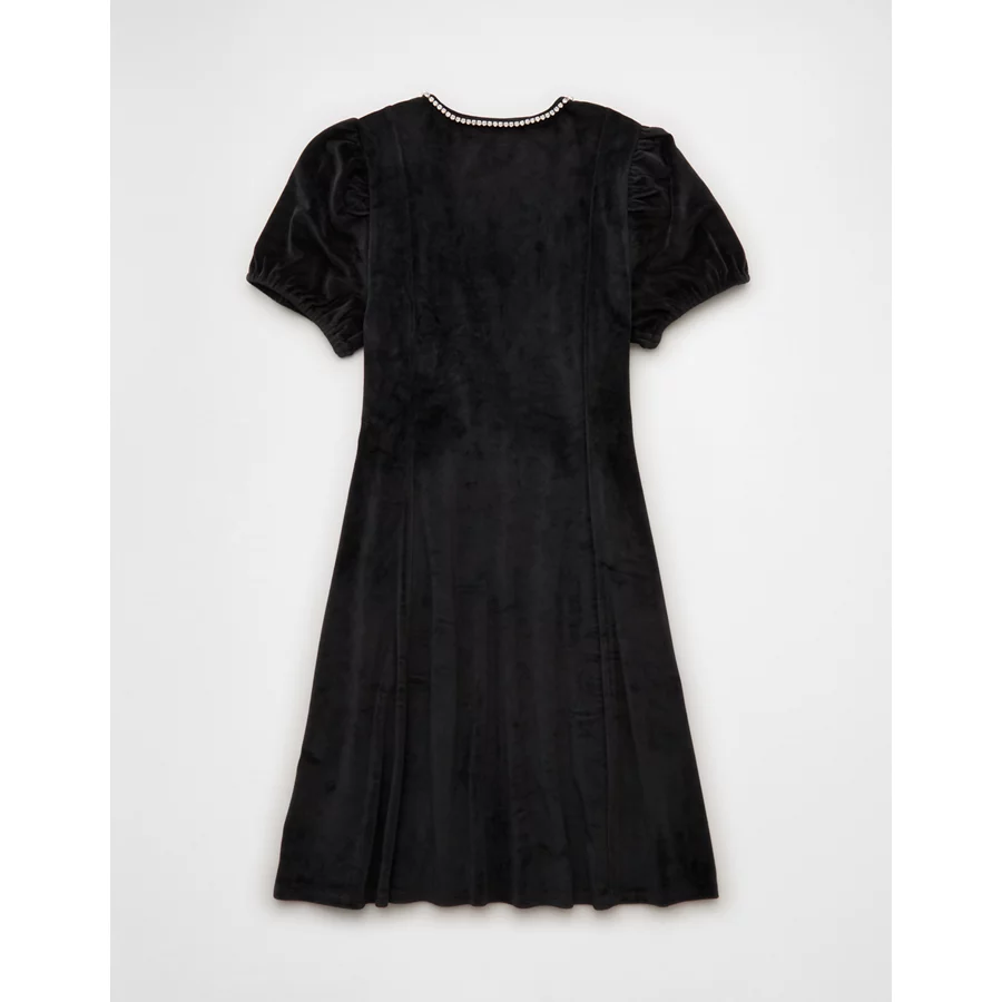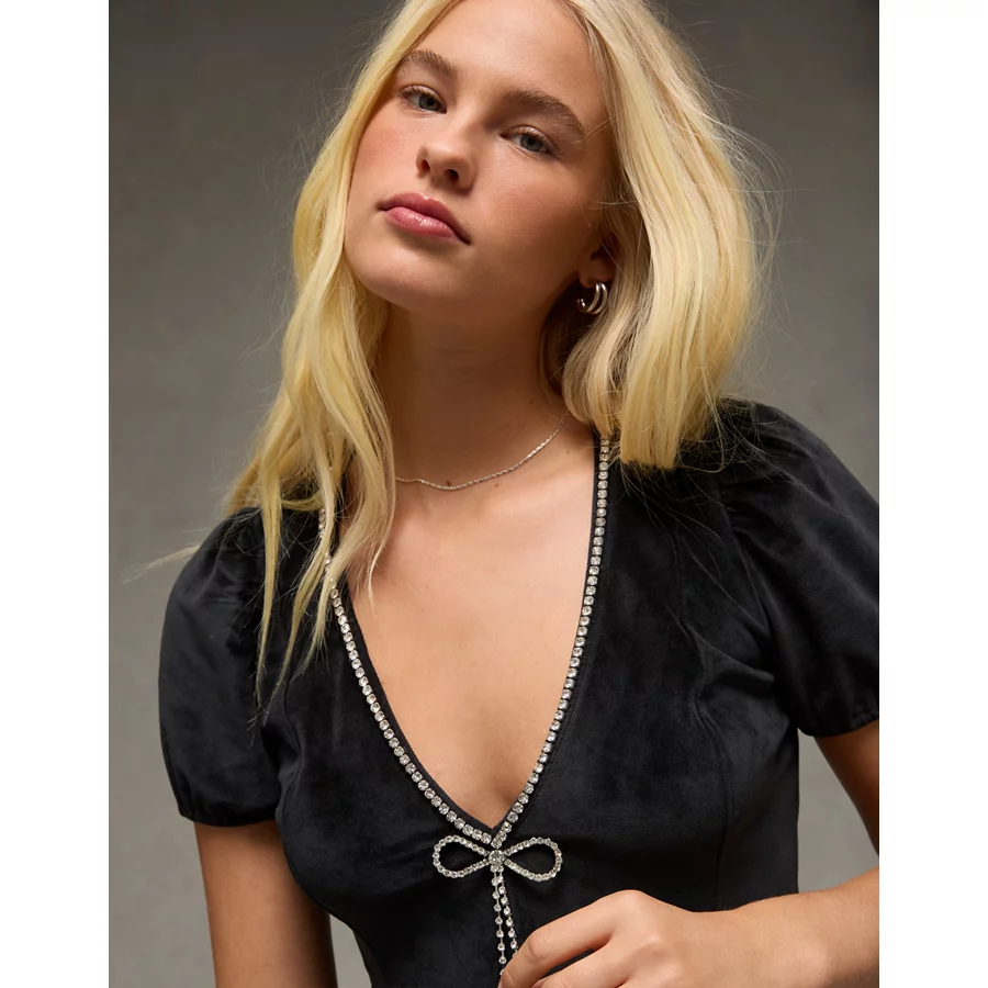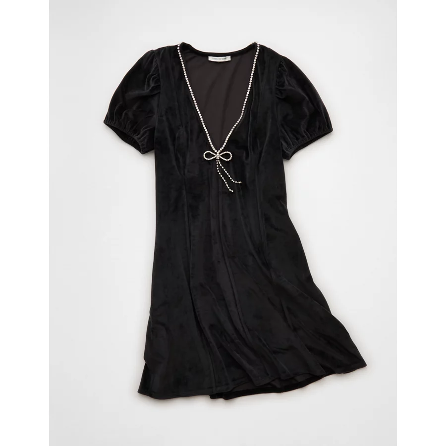 AE Rhinestone Puff Sleeve Mini Dress – Black