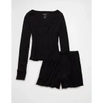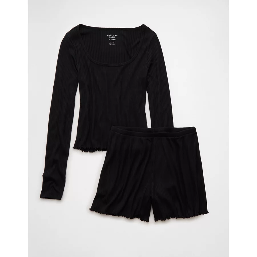 AE Ribbed Plush PJ Set – Bold Black