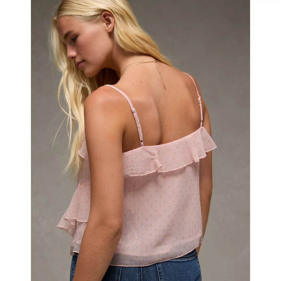 Chiffon fabricV-neckAsymmetrical ruffle details throughoutLeg slit 100% CottonMachine washImported Slip dress silhouetteMaxi lengthSleeveless