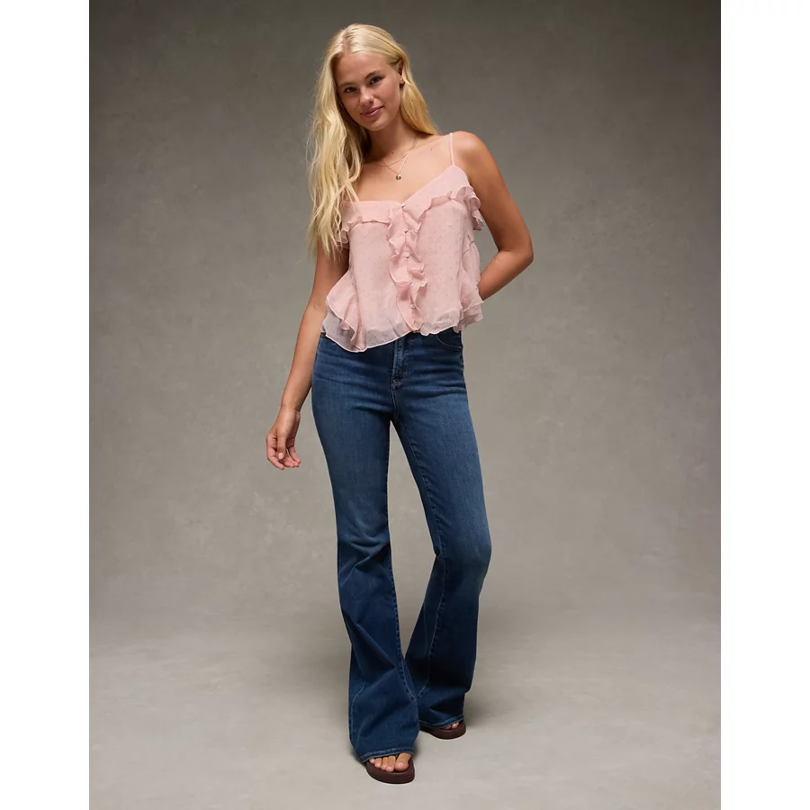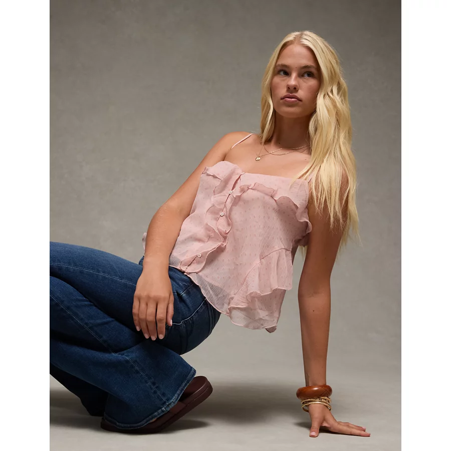 AE Asymmetrical Ruffle Maxi Slip Dress – Blue