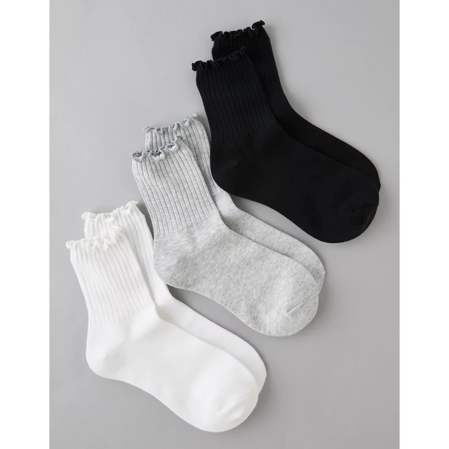 AE Ruffle Cropped Crew Socks 3-Pack – Multi