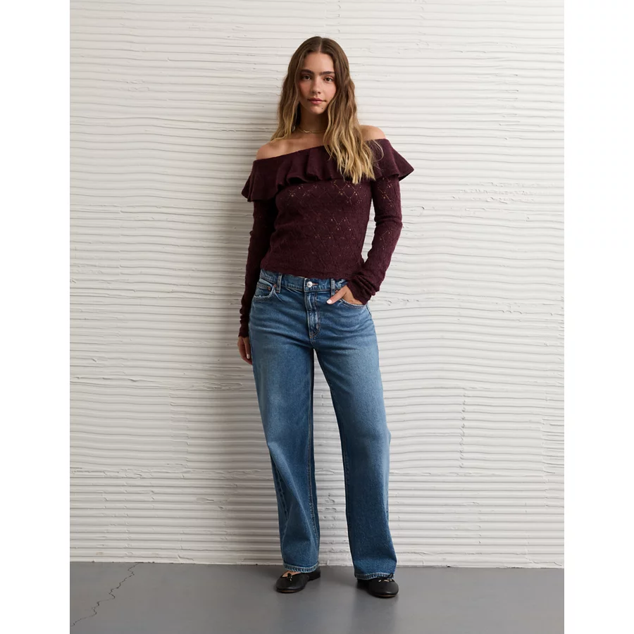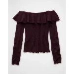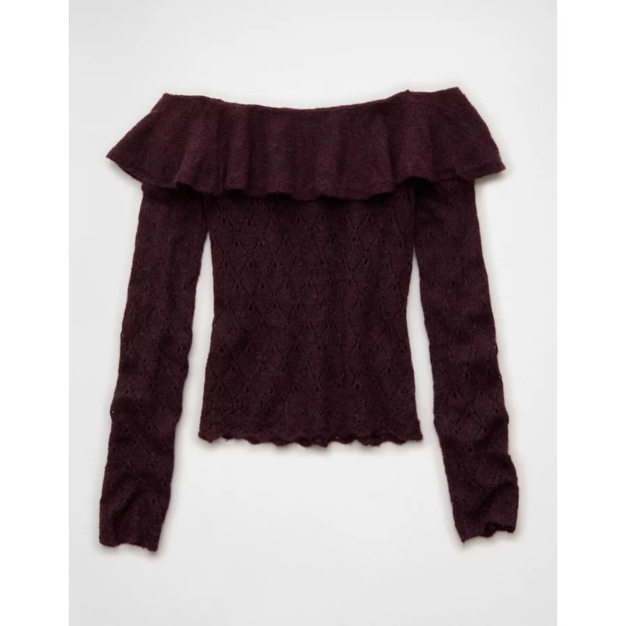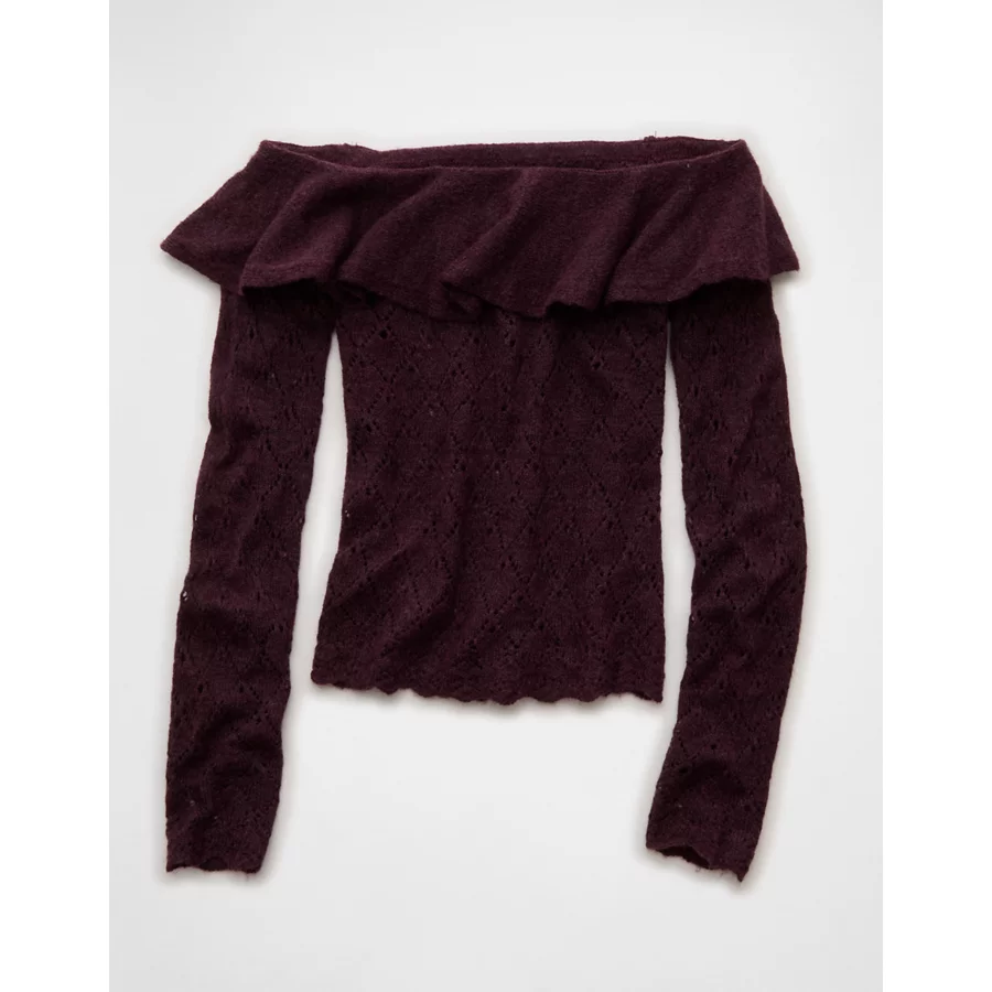 AE Ruffle Off-The-Shoulder Sweater – Moonlight
