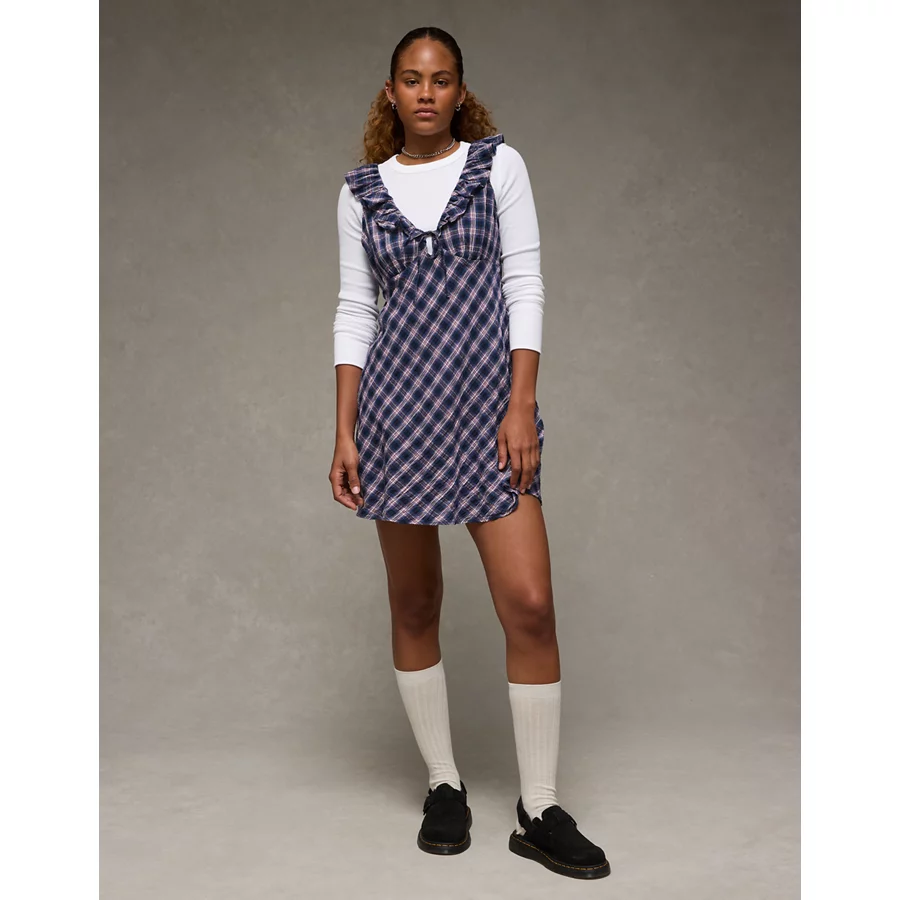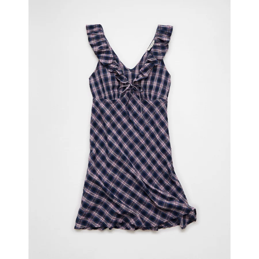 AE Ruffle Tie-Front Mini Dress - Burgundy