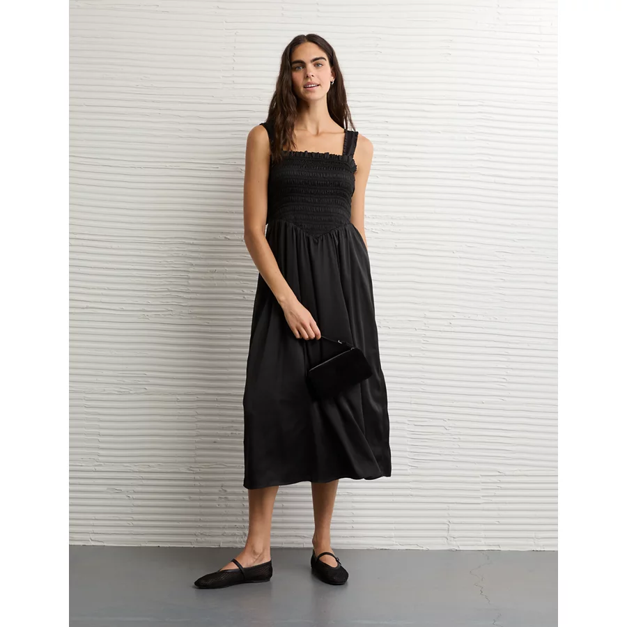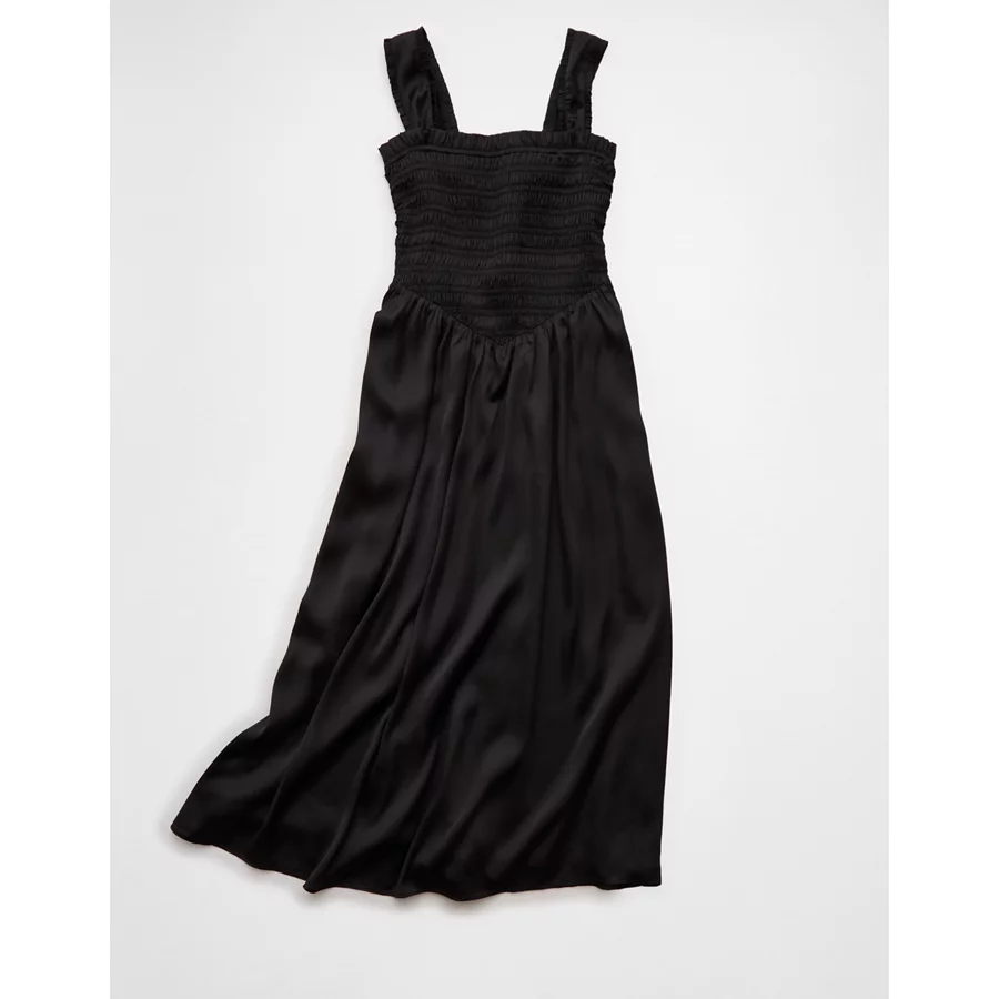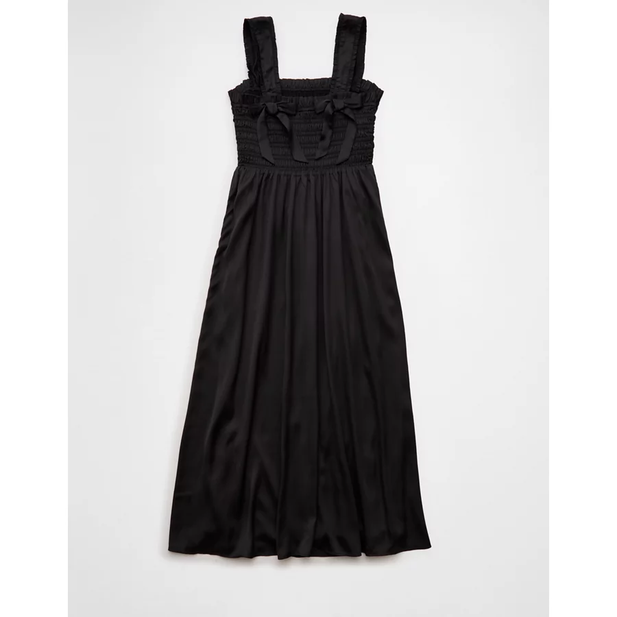 AE Satin Bella Bow Midi Dress – Black