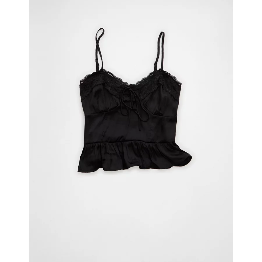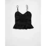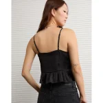 AE Satin Peplum Tank Top – Black