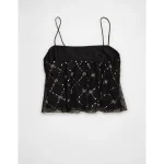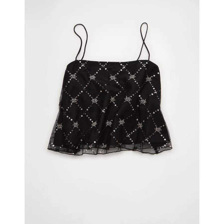 AE Sequin Mesh Cami Top – Black