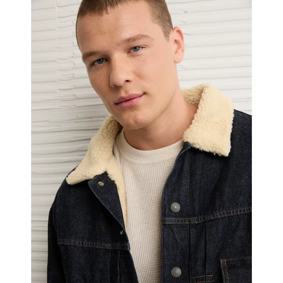AE Sherpa Fleece Graphic Henley Sweatshirt - Naive Pink