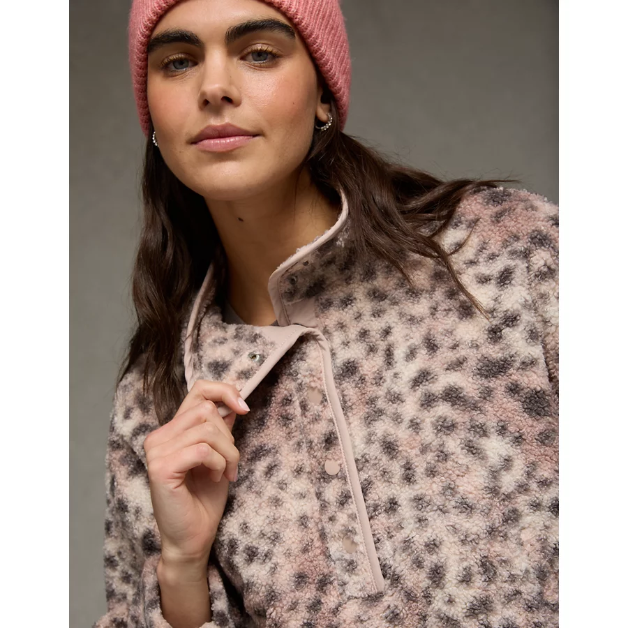 AE Sherpa Fleece Graphic Henley Sweatshirt – Naive Pink