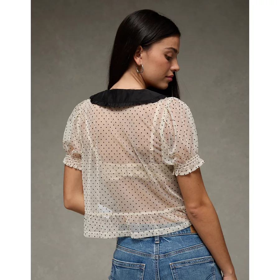 AE Short Sleeve Sheer Blouse – Cream