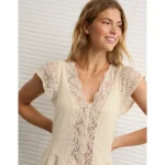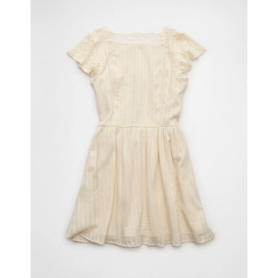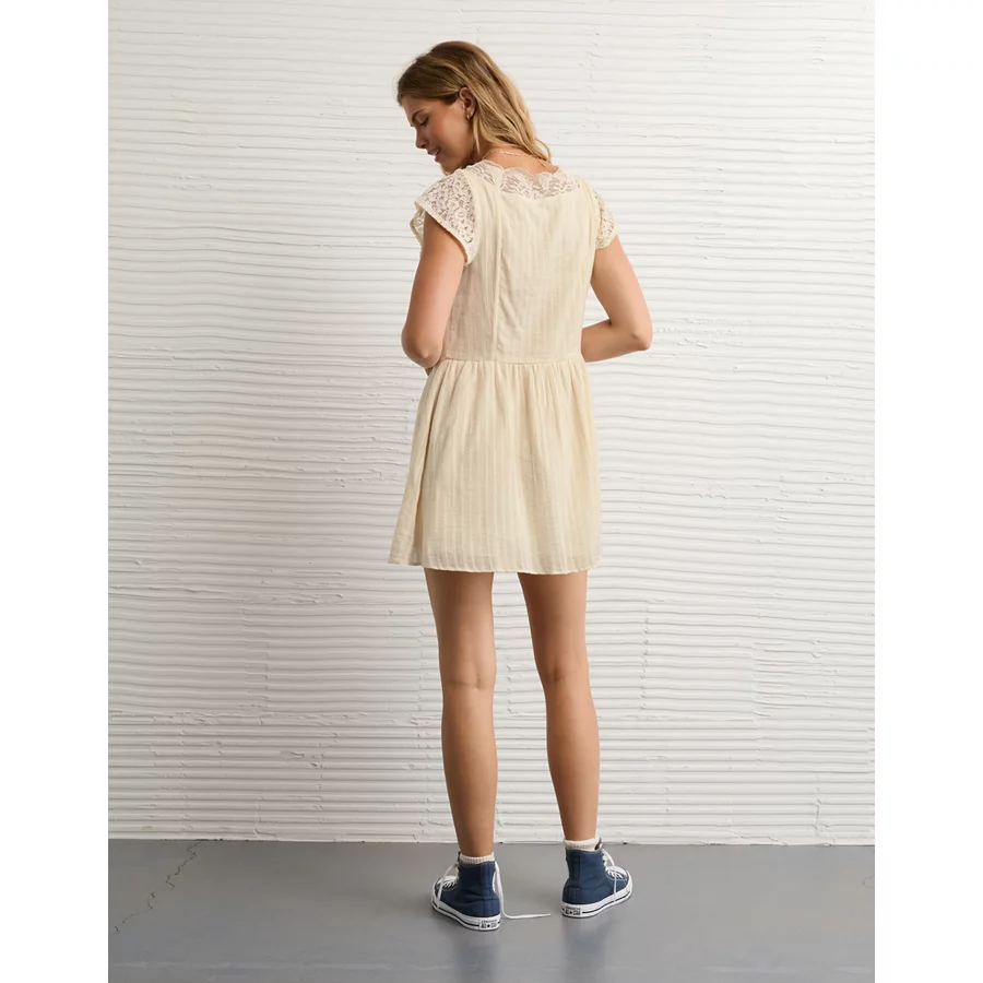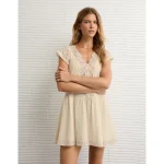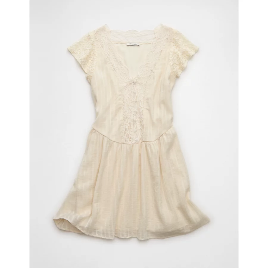 AE Short Sleeve V-Neck Mini Dress – Cream