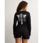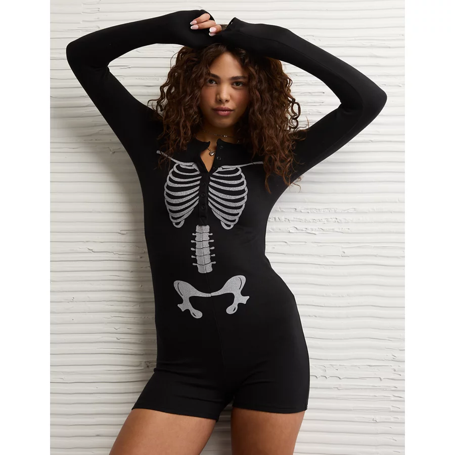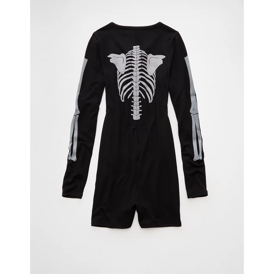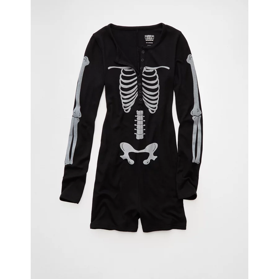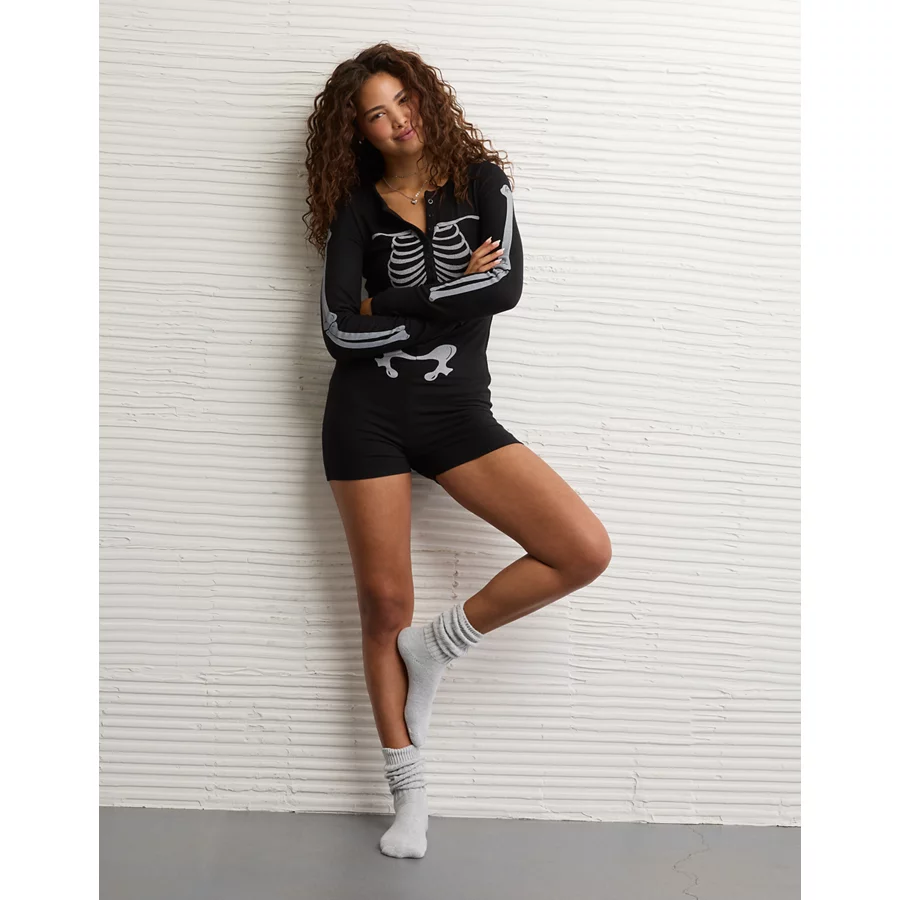 AE Skeleton Luxe Plush PJ Romper – Black