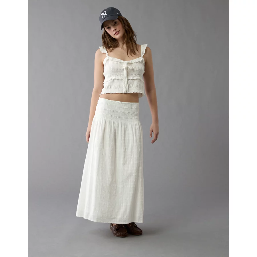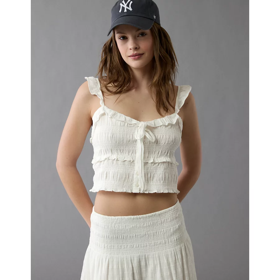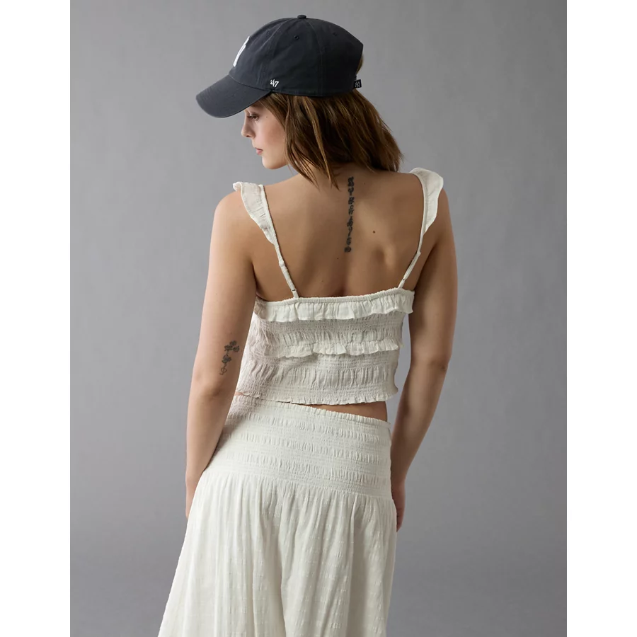 AE Smocked Ruffle Tank Top – White