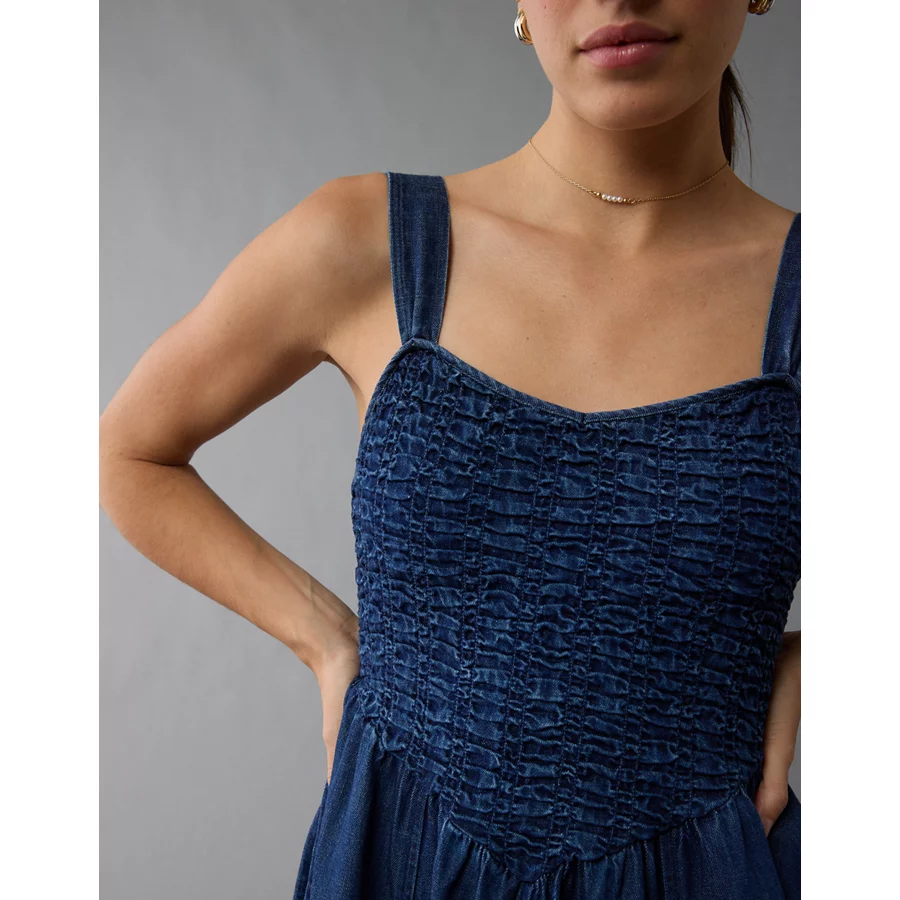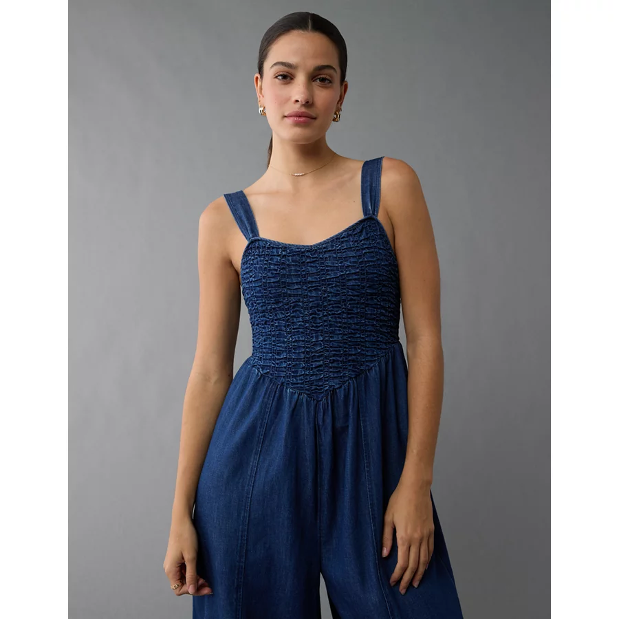 AE 8″ Dreamy Drape Stretch Low-Rise Baggy Jort – Medium Bright Indigo