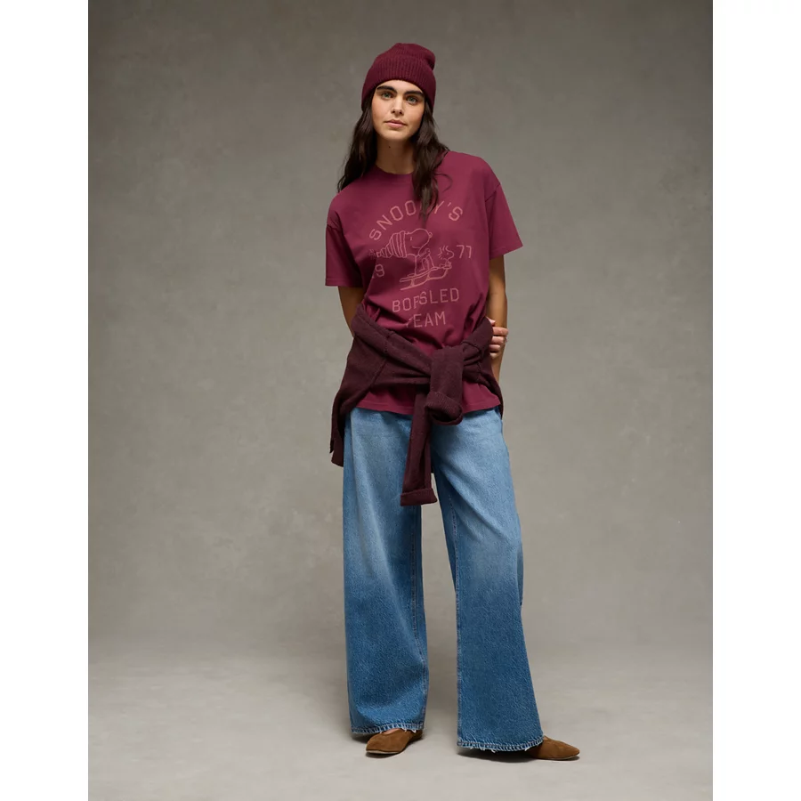 AE Snoopy Holiday Oversized Graphic T-Shirt – Preppy Red