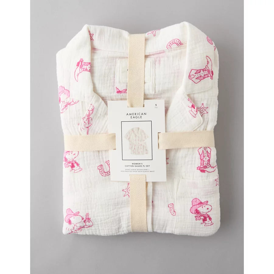 AE Snoopy Western Cotton Gauze PJ Set – White