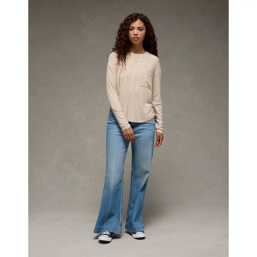 AE Soft & Sexy Long Sleeve Pocket T-Shirt – Oatmeal