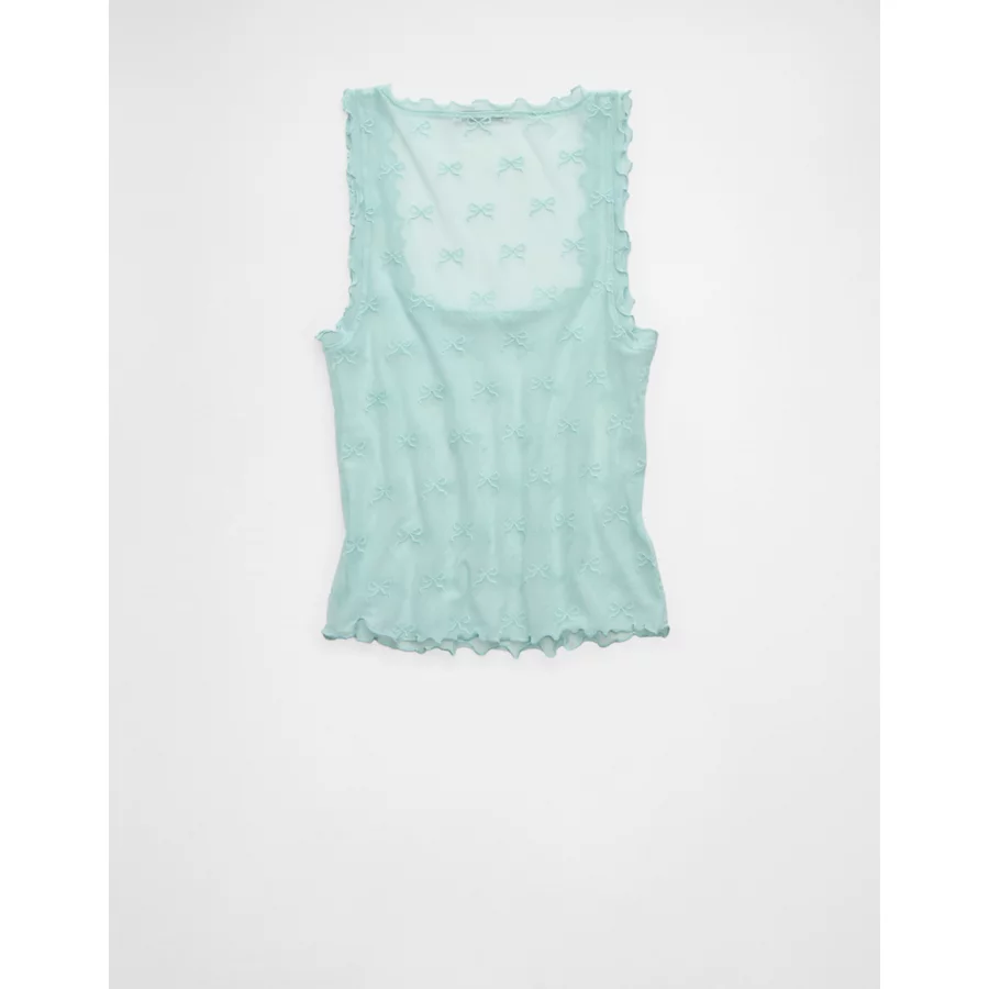 AE Square Neck Bow Mesh Tank Top – Light Blue