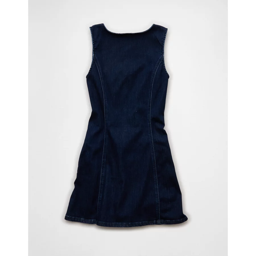 AE Square Neck Denim Mini Dress – Dark Wash