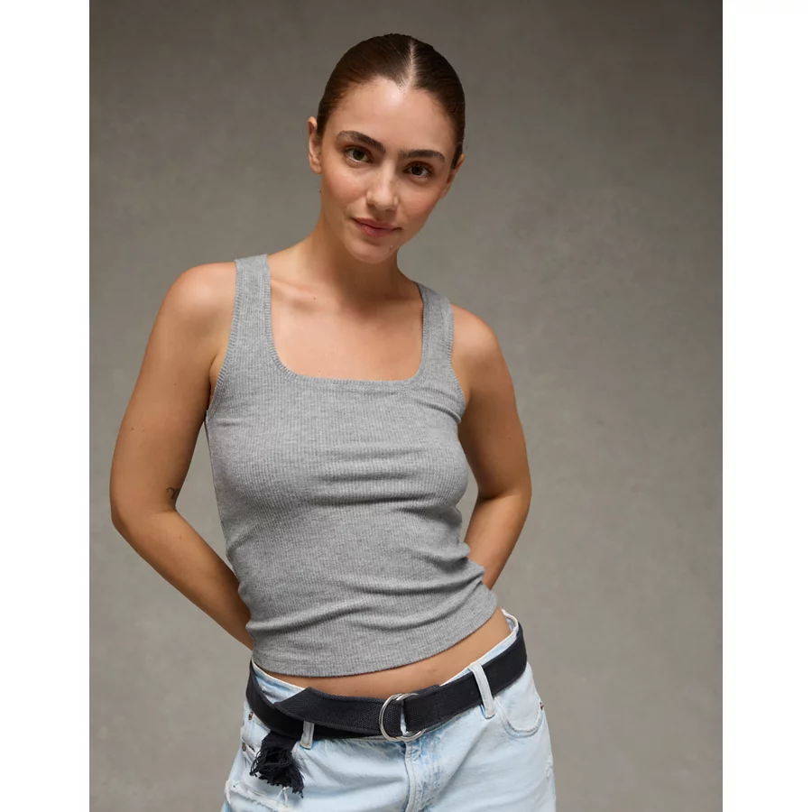 AE Square Neck Plush Tank Top – Medium Heather Gray