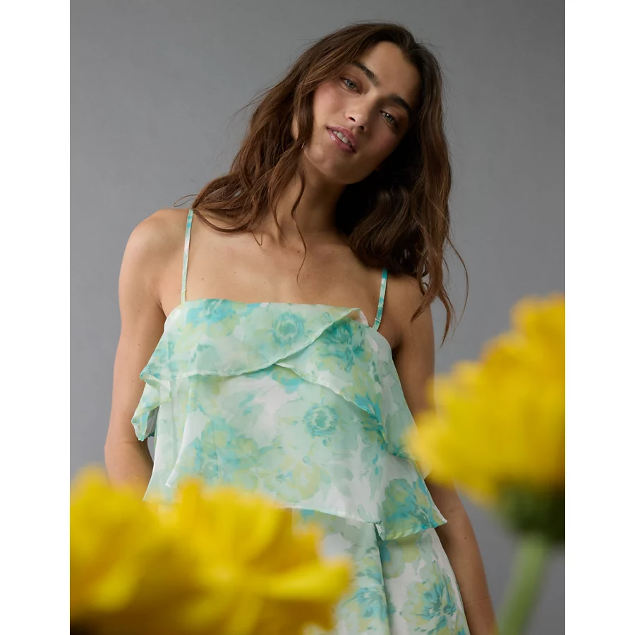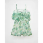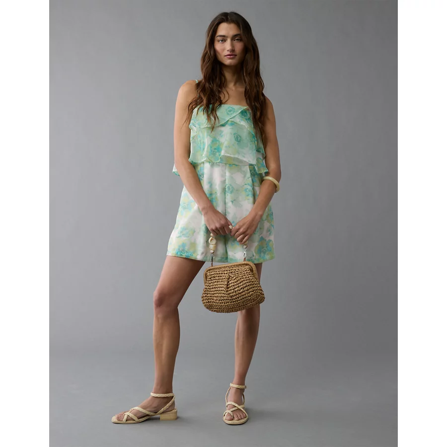 AE Strapless Organza Ruffle Romper – Green