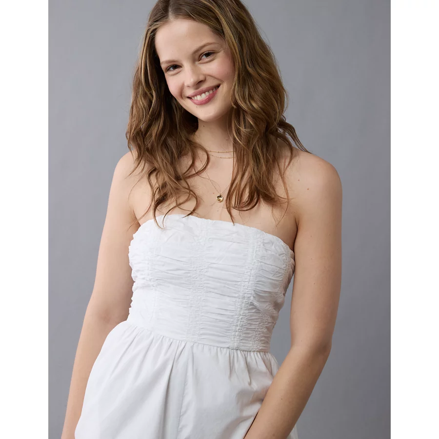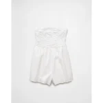 AE Strapless Ruched Bodice Romper – Cream