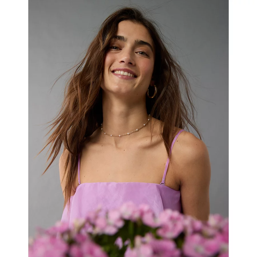 AE Asymmetrical Ruffle Maxi Slip Dress – Light Blue