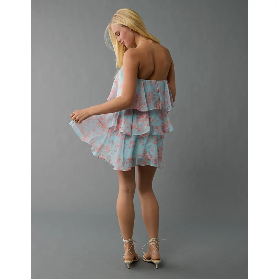 AE Strapless Ruffle Tiered Mini Dress – Blue