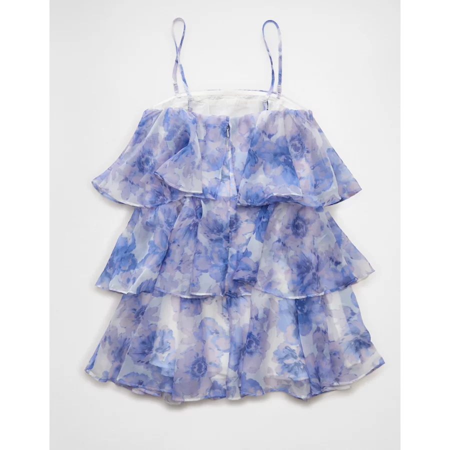 AE Strapless Ruffle Tiered Mini Dress - Blue