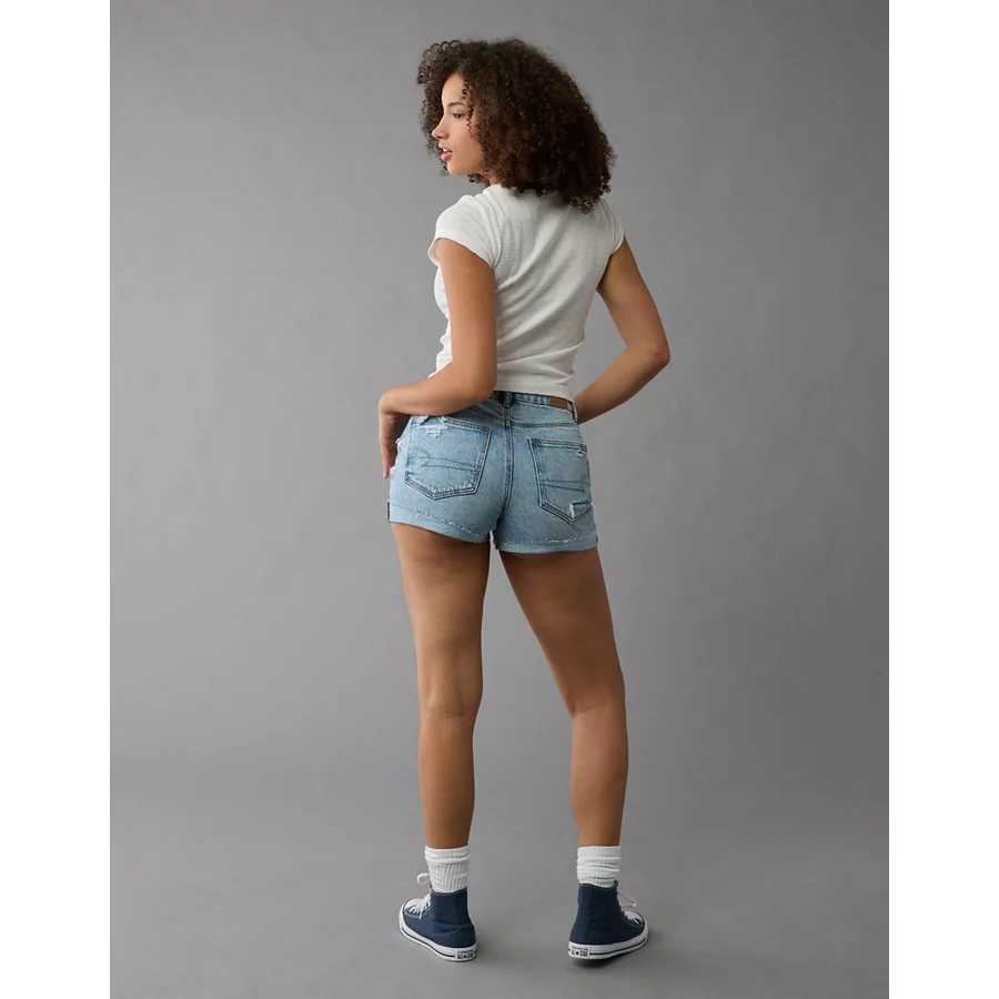 AE Stretch Curvy Ripped Denim Mom Short – Medium Bright Indigo