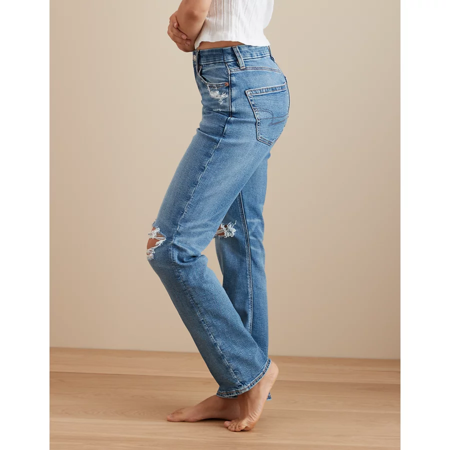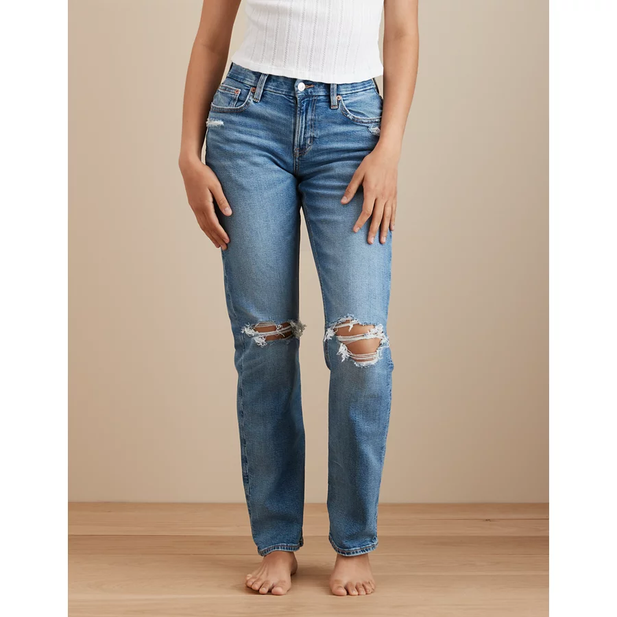 AE Stretch Curvy Ripped Straight Jean – Medium Destroy