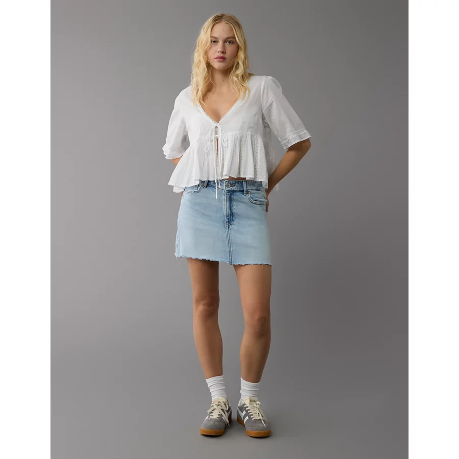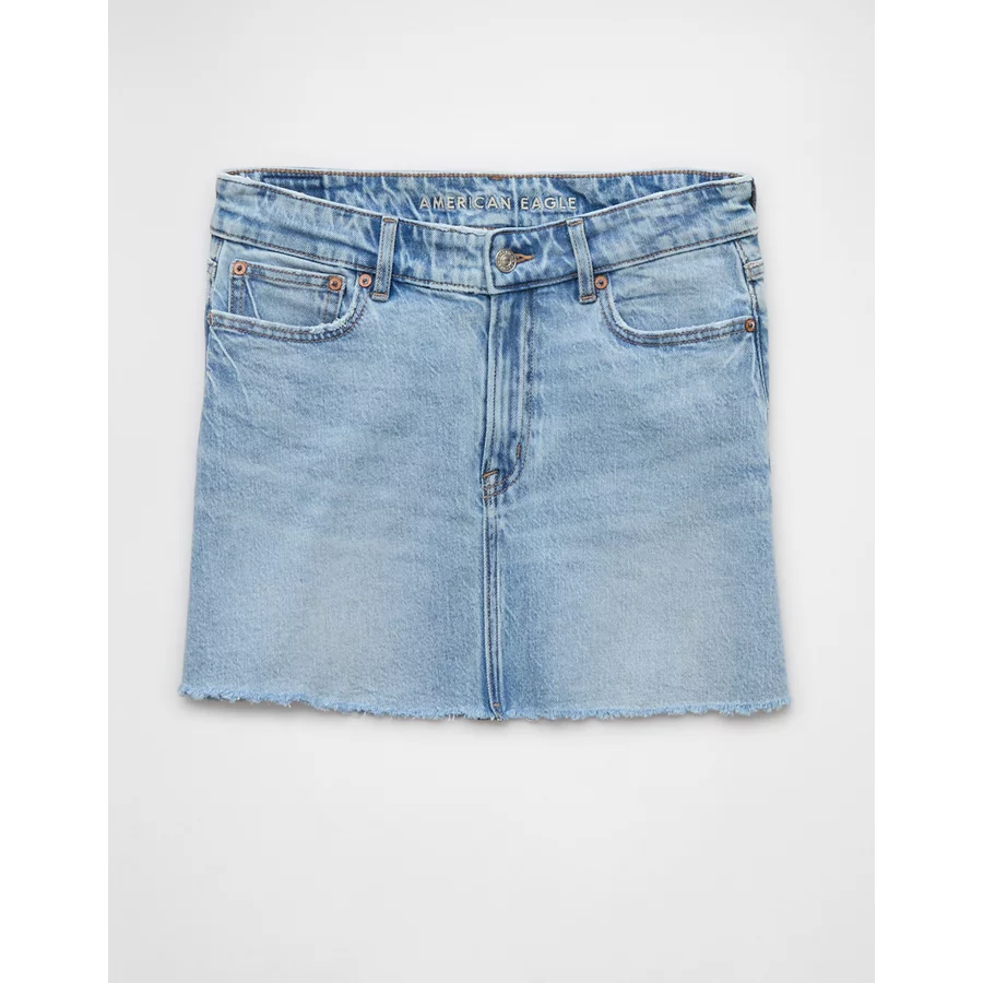 AE Stretch High-Waisted Perfect Denim Mini Skirt – Light Blue