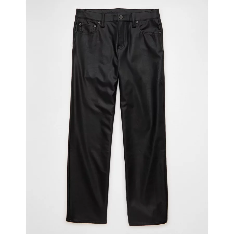 AE Stretch High-Waisted Stovepipe Leather Pant – Onyx Black