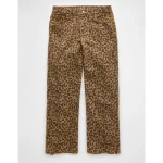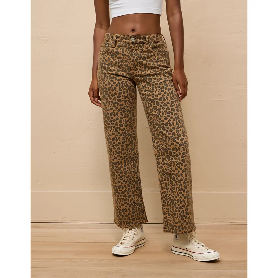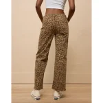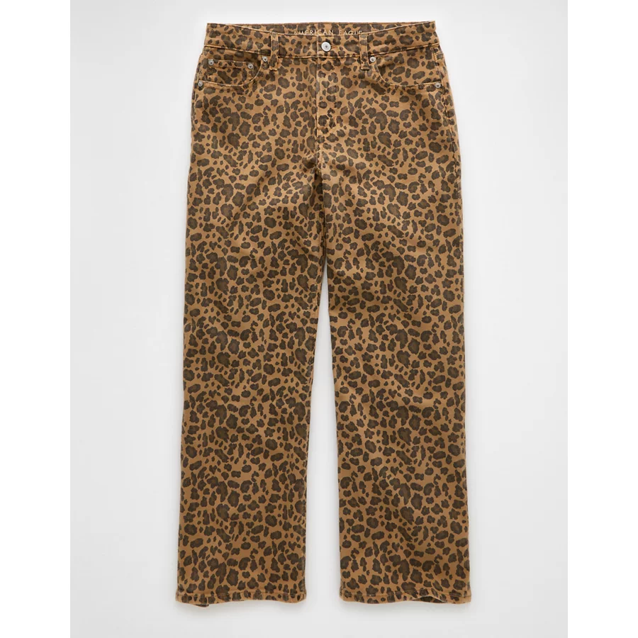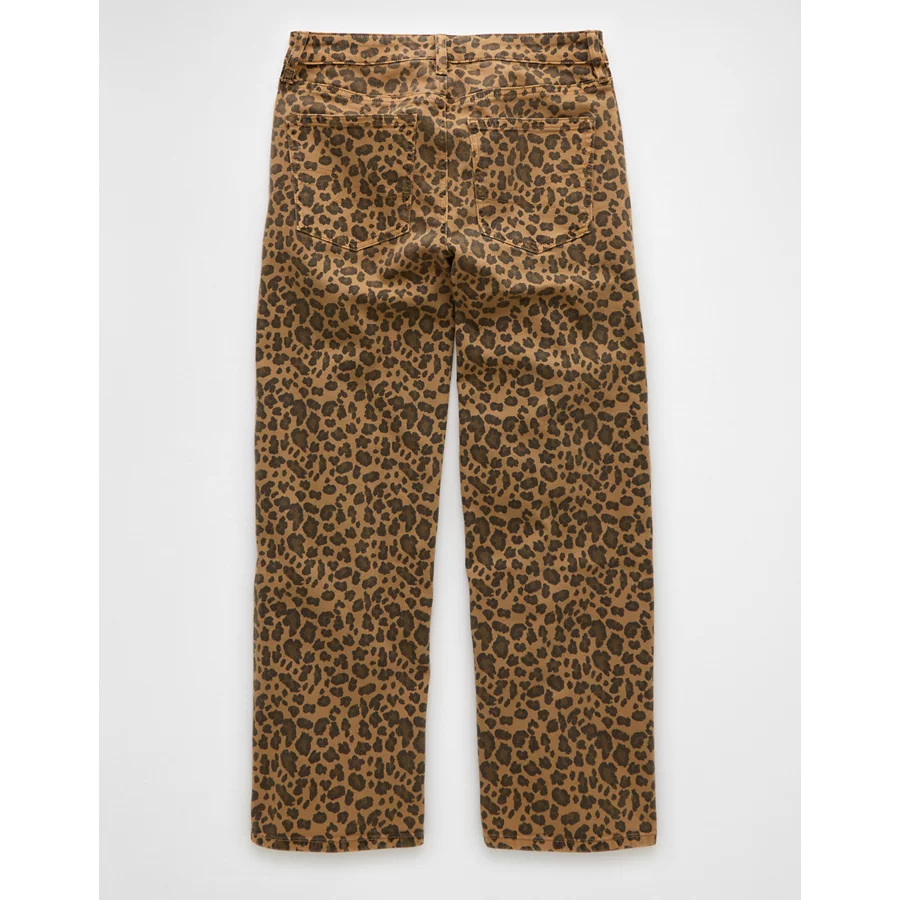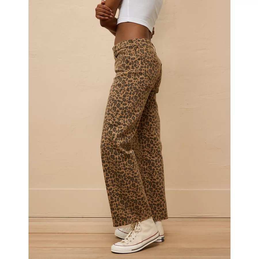 AE Stretch Leopard Low-Rise Baggy Wide-Leg Pant - Brown