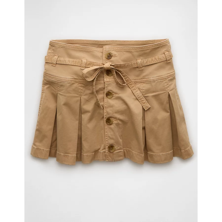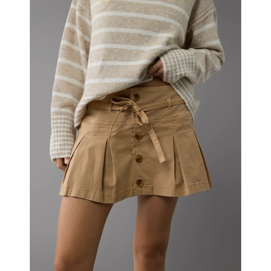 AE Stretch Low-Rise Pleated Mini Skort – Camel