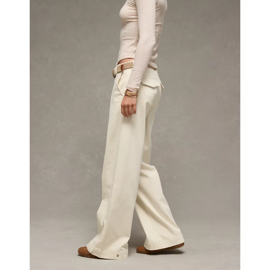 AE Stretch Mid-Rise Ultra Wide-Leg Convertible Trouser – Bone Khaki
