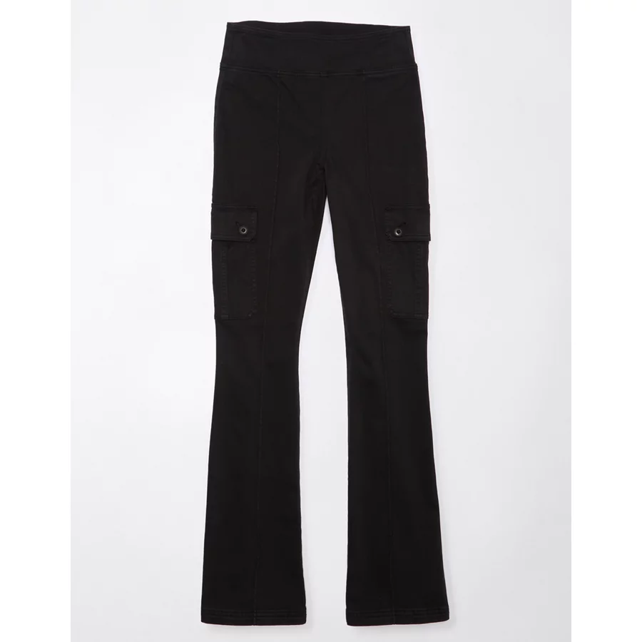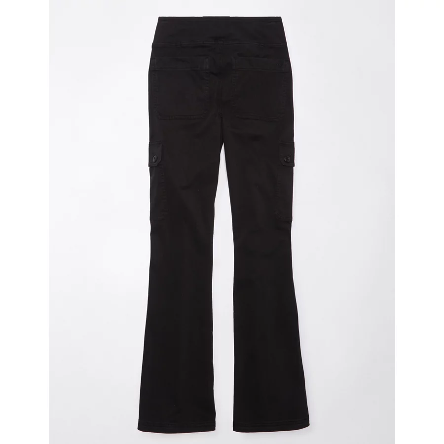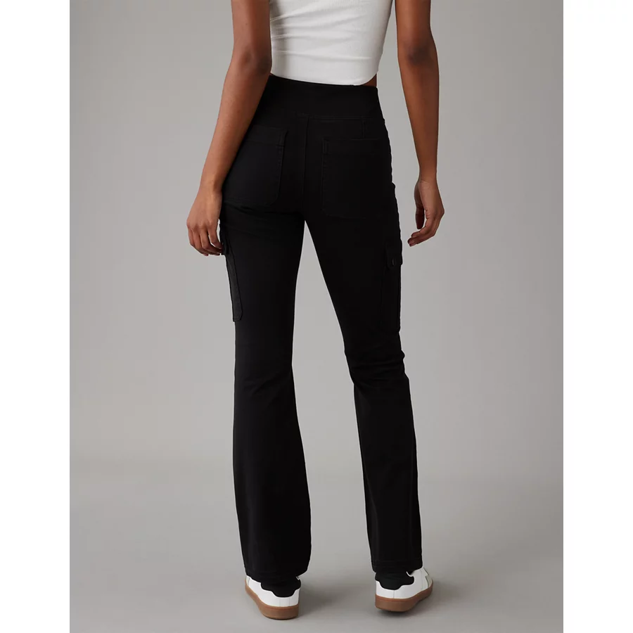 AE Stretch Pull-On High-Waisted Kick Bootcut Cargo Pant – Onyx Black