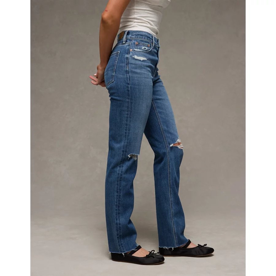 AE Stretch Ripped Super High-Waisted Straight Jean – Dreamy Indigo