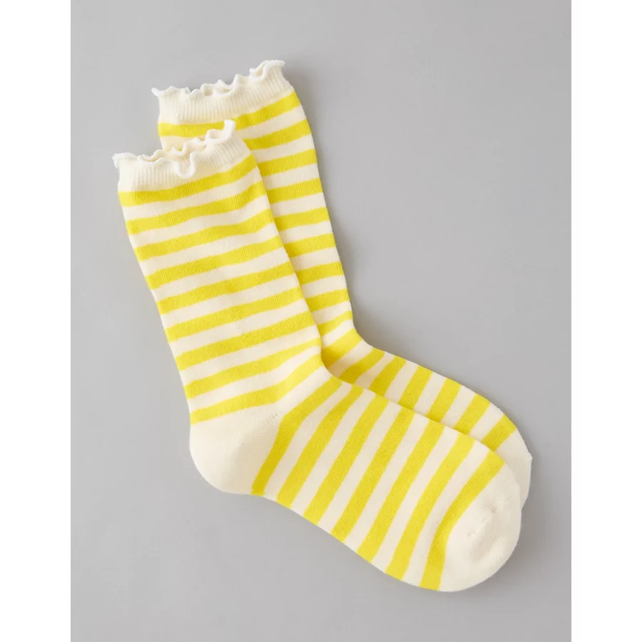 AE Striped Ruffle Crew Socks – Neon Yellow
