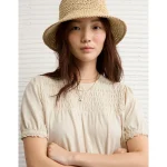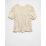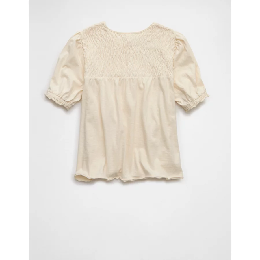 AE Sunchaser High Neck Puff Sleeve Smocked T-Shirt – Cream