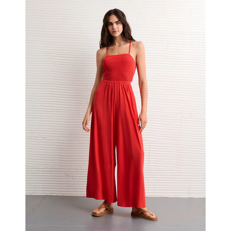 AE Sunchaser Knit Babydoll Jumpsuit – Red