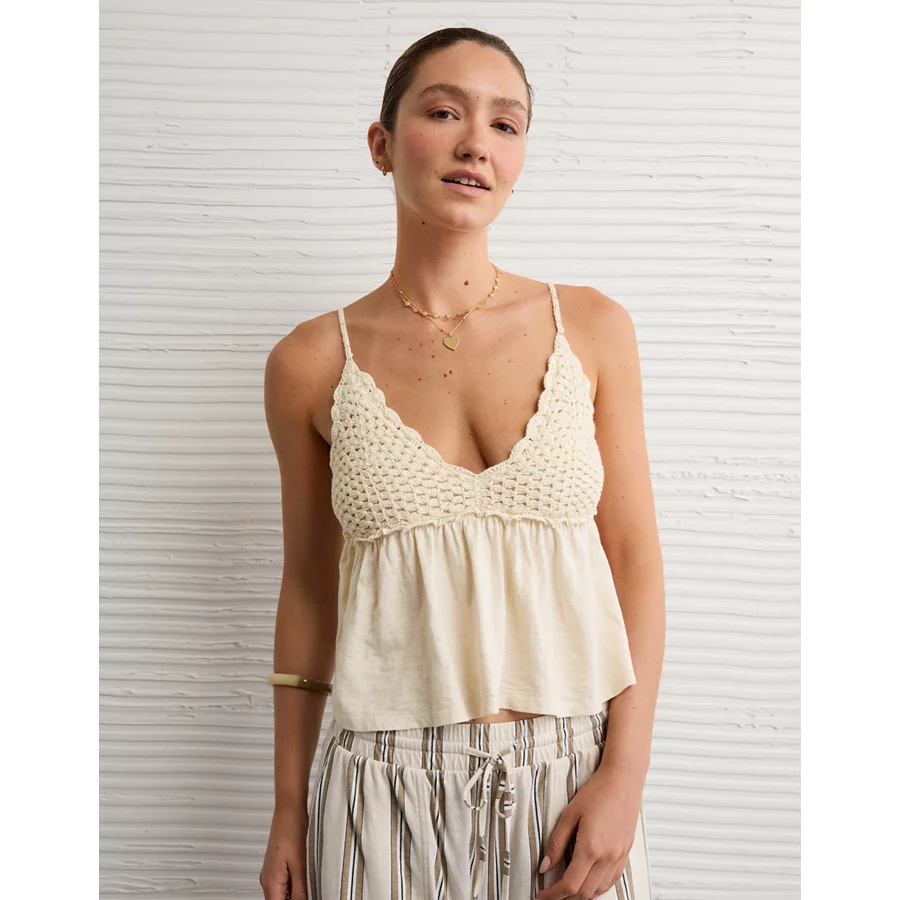 AE Sunchaser Knit Crochet Babydoll Cami – Cream
