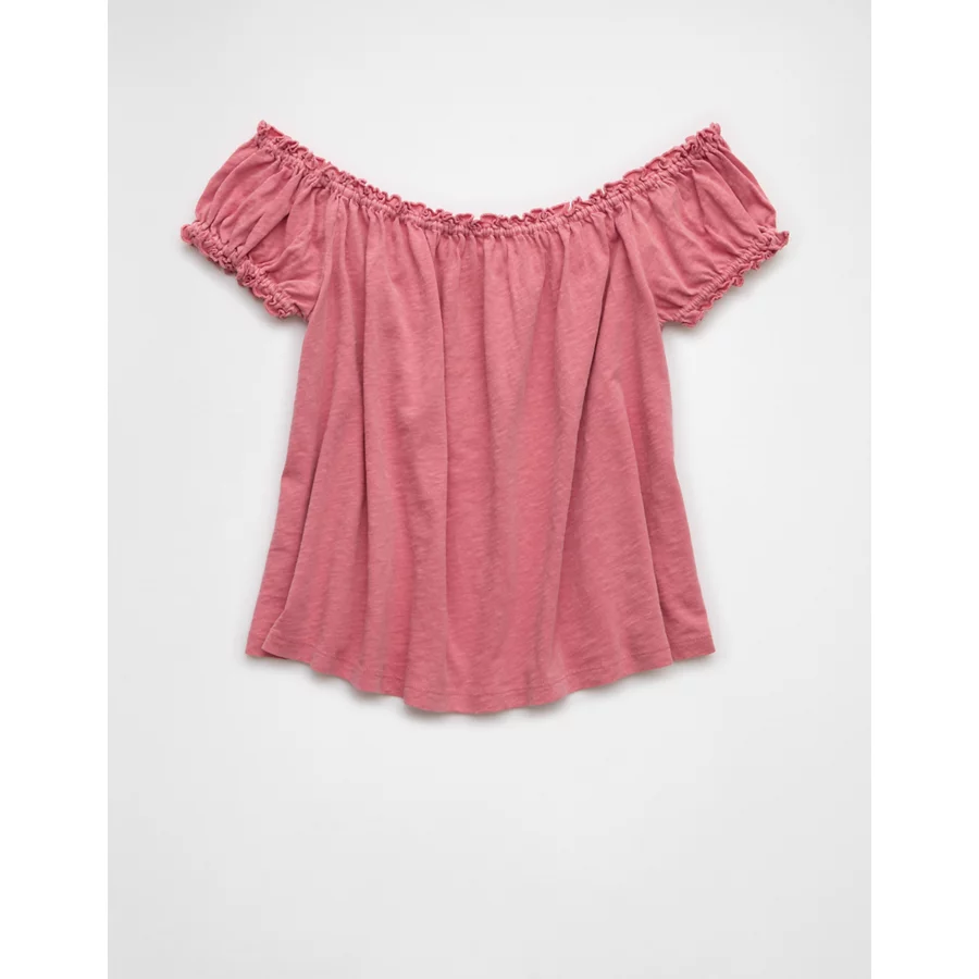 AE Sunchaser Knit Off The Shoulder Swing Top – Blush