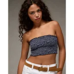 AE Sunchaser Knit Smocked Bandeau – Blue Garden