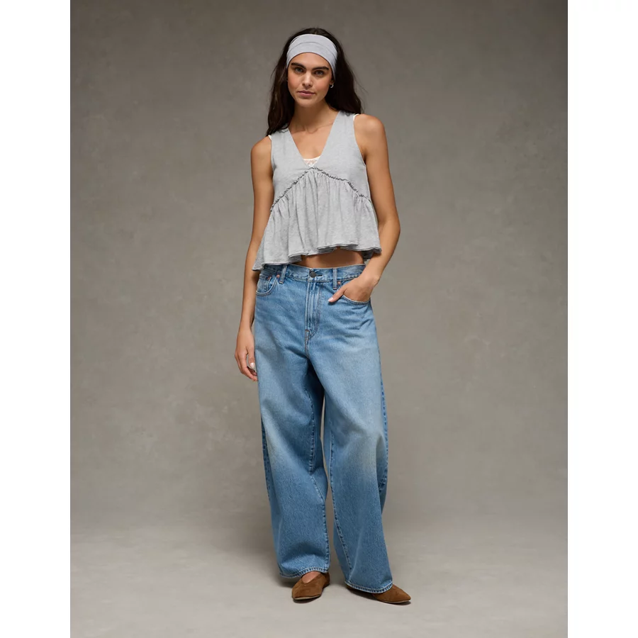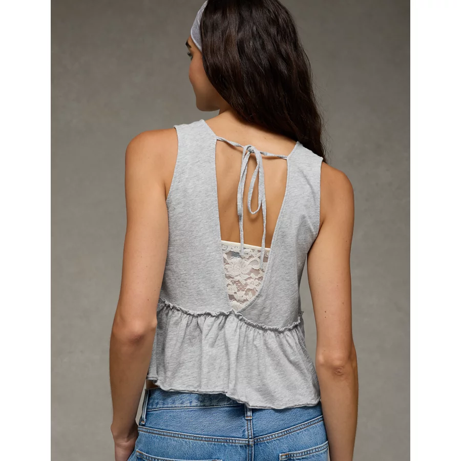 AE Sunchaser Knit V-Neck Swing Tank Top – Heather Gray