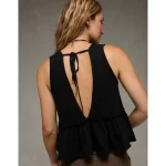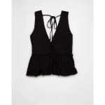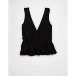 AE Sunchaser Knit Wrap Front Smocked Tank Top - True Black