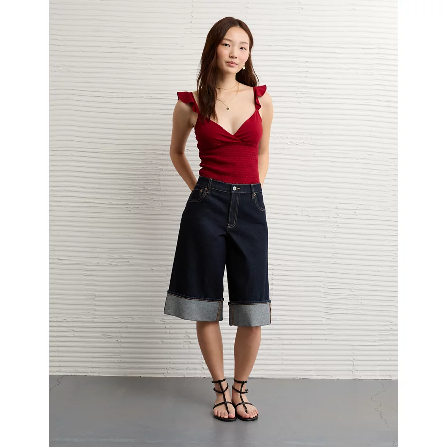 AE 11″ Dreamy Drape Stretch High-Waisted Jort – Light Tinted Wash